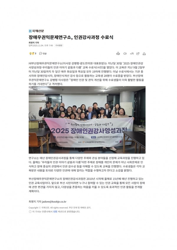 장애우권익문제연구소, 인권강사과정 수료식